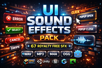 The FULL version of this pack contains 67 Royalty-Free UI Sound Effects, carefully designed for games and applications.